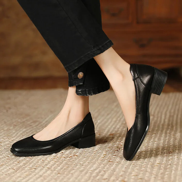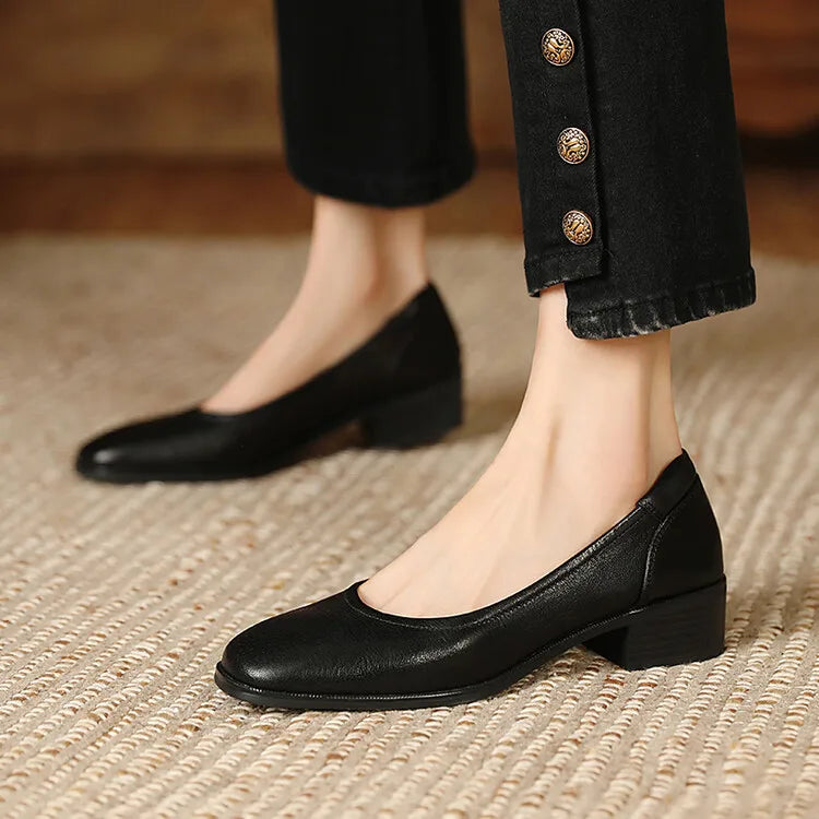 Defined by a tapered kitten heel,  the Rosaline pumps rest on a low 4mm heel and feature an elegant and sophisticated look, ensuring non-negotiable comfort. The square shaped toe and minimalist look add the touch for an elegant silhouette.